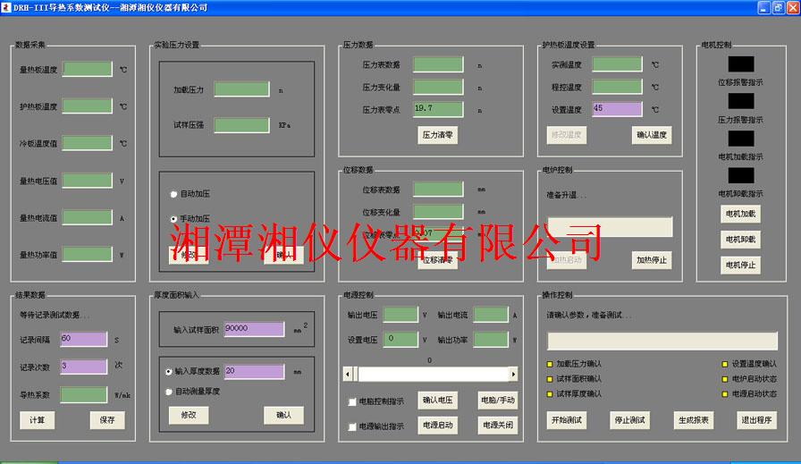 本儀器基于單向穩(wěn)定導(dǎo)熱原理,當(dāng)試樣上、下兩面處于不同的穩(wěn)定溫度下,測量通過試樣有效傳熱面積的熱流及試樣兩表面間溫差和厚度,計(jì)算導(dǎo)熱系數(shù)。滿足了材料檢測研究部門對材料導(dǎo)熱系數(shù)的測試要求。我公司研發(fā)的電子電路、計(jì)算機(jī)專用軟件對全過程進(jìn)行自動(dòng)測控。本機(jī)具有計(jì)算機(jī)自動(dòng)測厚,自動(dòng)加壓,測量不同壓力下的導(dǎo)熱系數(shù)。全自動(dòng)數(shù)據(jù)采集、數(shù)據(jù)處理、打印報(bào)表,數(shù)據(jù)存儲(chǔ)。測量時(shí)間短、數(shù)據(jù)準(zhǔn)確、重復(fù)性好,自動(dòng)化程度高的優(yōu)點(diǎn)。