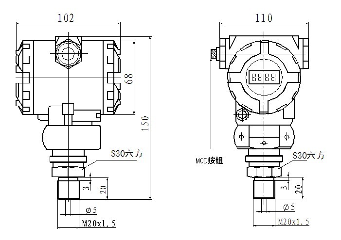 17.過程連接: M20×1.5(外螺紋)或根據(jù)用戶要求