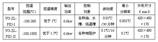 LRG-YG-ZL-PID系列智能控溫儀是按現(xiàn)行檢定規(guī)程設(shè)計制,用于溫度元件校準(zhǔn)中各種檢定爐,退火爐,及油槽,水槽,低溫槽的智能控溫。采用日本原裝控溫儀表及晶閘管移相觸發(fā)板,控溫度,運(yùn)行穩(wěn)定,溫度過?。?000℃過沖僅4℃),具有手動調(diào)壓能兼容性佳(可控鉑銠爐,硅碳棒爐等小電阻電爐),具有P、I、D參數(shù)自整能,操作容易非專業(yè)人士也可輕松操作,兼容11種熱電偶8種熱電阻輸入。是專業(yè)熱門及冶金、機(jī)械、化、科研門理想的控溫設(shè)備。