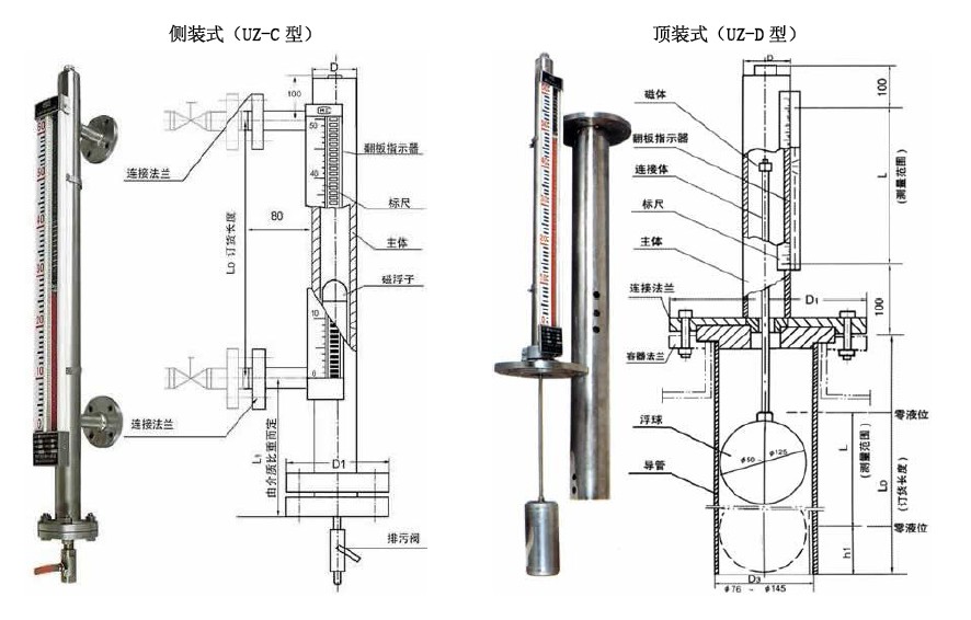 根據(jù)安裝位置主要可分為側(cè)裝和頂裝兩種,根據(jù)實(shí)際工況需求可加裝遠(yuǎn)傳、保溫及防腐功能。