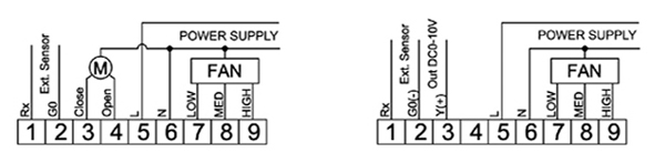 MSRE07模擬量風機盤管溫控器接線示意圖: