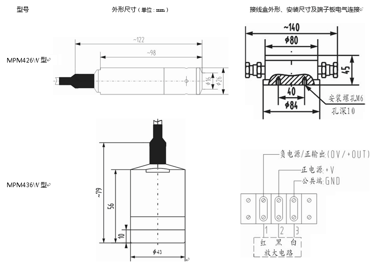-40℃~100℃(MPM426W型);-30℃~85℃(MPM436W型) |