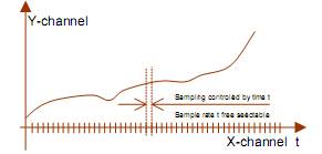 Y和X數(shù)據(jù)同步被儲(chǔ)存,且存取數(shù)量是通過測(cè)試時(shí)間變化(采樣時(shí)間)來決定的。