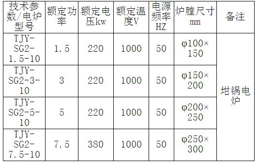 坩堝電爐/箱式電爐型號:TJY-SG2-1.5-10 用途概述: 箱式電爐、坩堝電爐用于各工礦企業(yè)、大專院校、科研單位作元素分析、小型鋼