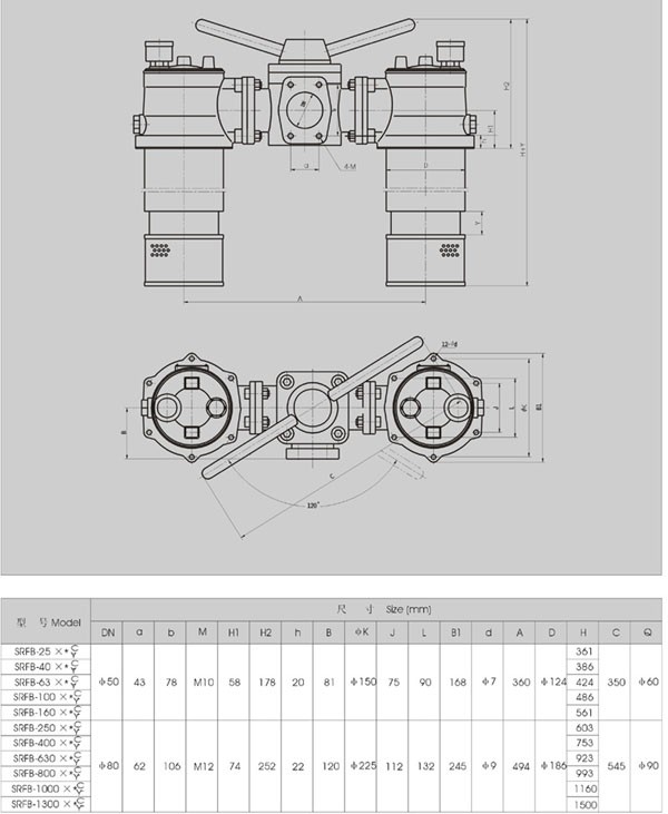 該過濾器是由兩只單筒過濾器、換向閥、旁通閥、發(fā)訊器、擴(kuò)散器等組成。它被安裝在油箱頂部,側(cè)面或底部,可在系統(tǒng)不停機(jī)的情況下更換濾芯,適用于連續(xù)工作的液壓系統(tǒng)回油精過濾,用來濾除液壓系統(tǒng)中諸元件磨損產(chǎn)生的金屬粉末以及密封件的橡膠雜質(zhì)等,使流回油箱的油液保持清潔,以利于系統(tǒng)中的油液循環(huán)使用。 當(dāng)一只過濾器的濾芯堵塞,致使進(jìn)出口壓差為0.39MPa時(shí),發(fā)訊器發(fā)訊,這時(shí),轉(zhuǎn)動(dòng)換向閥,使備用濾油器工作,然后更換已堵塞的濾芯。 在因故不能及時(shí)各呢?fù)Q已堵塞濾芯,使進(jìn)出口壓差進(jìn)一步上升到0.4MPa時(shí),旁通閥自動(dòng)開始工作,從而保護(hù)濾芯及系統(tǒng)正常工作,但用戶應(yīng)盡快更換濾芯。 因沒有止回閥,當(dāng)過濾器置于油箱側(cè)面和底部時(shí),在更換濾芯也不會(huì)使油箱內(nèi)的油液流出。 擴(kuò)散器設(shè)置在回油筒底部,能使回油的介質(zhì)平穩(wěn)的流入油箱內(nèi),不易產(chǎn)生氣泡,減少了空氣的重新進(jìn)入,并減弱已沉積污染物的騷動(dòng)。 濾芯采用化纖過濾材料,具有過濾精度高,通油能力大、原始壓力損失小、納污量大等優(yōu)點(diǎn),其過濾精度以過濾精度標(biāo)定,過濾比β3.5、10、20>100,過濾效率n≥90%,符合ISO標(biāo)準(zhǔn)。