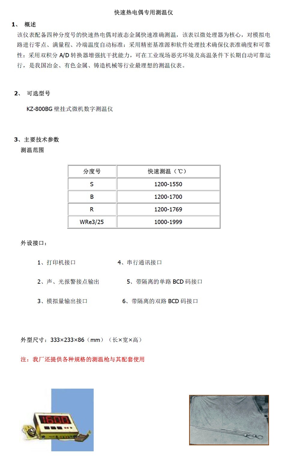 | 名稱 | 型號 | 分度號 | 允差 | 適用溫度 | 測量時間 | |