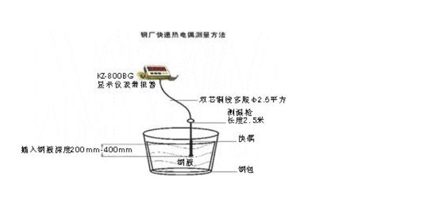3、快速熱電偶插入鋼水深度以300-400mm為宜,測量時不要測到爐壁或渣子上,做到:快、穩(wěn)、準,當二次儀表得到結(jié)果時,應立即提槍,快速熱電偶在 鋼水中浸漬 時間不得超過5秒,否則易燒毀測溫槍。