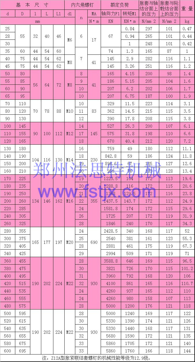 Z12A脹緊連接套圖紙及參數(shù)