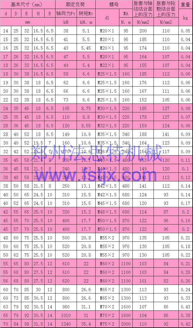 脹緊套是一種無鍵連接裝置,是通過高強度拉力螺栓的作用,在內(nèi)環(huán)與軸之間,外環(huán)與輪轂之間產(chǎn)生的巨大的抱緊力,以實現(xiàn)機件與軸的無鍵聯(lián)接,當(dāng)承受負荷時靠脹套與機件軸的結(jié)合壓力及相關(guān)產(chǎn)生的摩擦力傳遞轉(zhuǎn)矩,軸向力或二者的復(fù)合載荷。