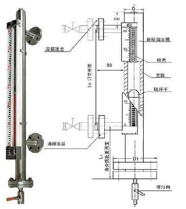 側(cè)裝式磁翻板液位計是根據(jù)磁性原理、阿基米德(浮力定律)等原理巧妙地結(jié)合機械傳動的特性而開發(fā)研制的一種專門用于液位測量的裝置?!?/p>