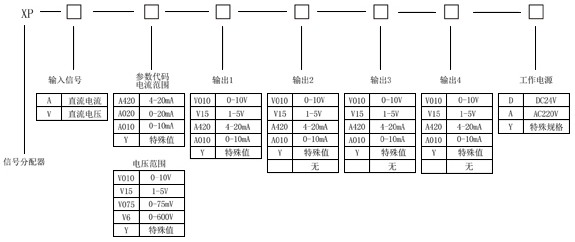 概述XP系列信號分配器(一進二出,一進三出,一進四出)是在自動化控制系統(tǒng)中對各種工業(yè)信號變送、轉換、隔離、傳輸、運算的儀表,可與各