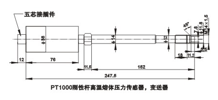 二、PTl000鋼性桿高溫熔體壓力傳感器及變送器: