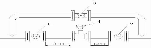 1.高溫型(80度至500度)、常溫型(-30度至70度)、低溫型(-40至-200度)流量計的安裝: a、常溫型、低溫型、高溫型流量計視不同工況采用水平、垂直或倒置式安裝(以出廠校驗單為準); 1 ·2 ·3 分別為前后閥和旁通閥;4 為流量計,L≥10D 和L≥5D分別為前后直管段長度,D為管道公稱直徑。