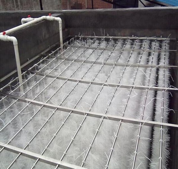 立體彈性填料篩選了聚烯烴類和聚酰胺中的幾種耐腐、耐溫、耐老化的優(yōu)質(zhì)品種,混合以親水、吸附、抗熱氧等助劑,采用特殊的拉絲,絲條制毛工藝,將絲條穿插固著在耐腐、高強(qiáng)度的中心繩上,由于選材和工藝配方精良,剛?cè)徇m度,使絲條呈立體均勻排列輻射狀態(tài),制成了懸掛式立體彈性填料的單體,填料在有效區(qū)域內(nèi)能立體均勻舒展?jié)M布,使氣、水、生物膜得到充分混滲接觸交換,生物膜不僅能均勻的著床在每一根絲條上,保持良好的活性和空隙可變性,而且能在運(yùn)行過程中獲得愈來愈大的比表面積,又能進(jìn)行良好的新陳代謝,這一特征與現(xiàn)象是目前其他填料不可比擬的。