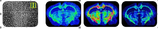 通過使用pL-級壓電式噴霧單元模塊,為矩陣觀察提供各種基質(zhì)溶液的高還原性斑點,如HCCA(L) 和 DHB (R)。