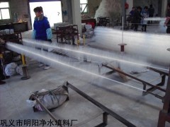 立體彈性填料與硬性類蜂窩填料相比,孔隙可變性大,不堵塞;與軟性類填料相比,材質(zhì)壽命長,不粘連結(jié)團;與半軟性填料相比,表面積大、掛膜迅速、造價低廉。因此,該填料可確認是繼各種硬性類填料、軟性類填料和半軟性填料后的第四代節(jié)能新穎填料。