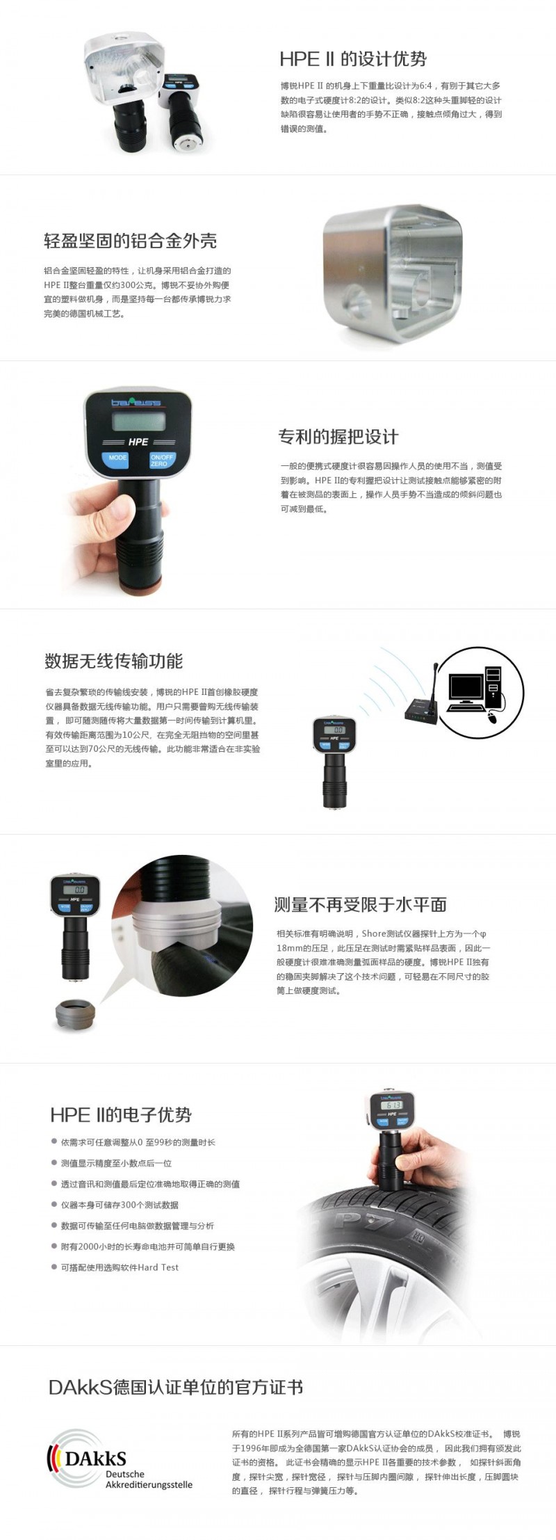 HPE II電子式硬度測試器系列為新一代電子式便攜硬度測試器,機(jī)身采用堅(jiān)固輕盈的鋁合金材質(zhì)。本儀器所設(shè)計(jì)的接觸壓力值和測量時(shí)間都比照了標(biāo)準(zhǔn),的測量數(shù)據(jù)由電子顯示以及聲音信 號(hào)幫助在測量過程中避免有可能的誤判。 可存取高達(dá)300次測量數(shù)據(jù)在儀器本身或傳輸?shù)诫娔X以便做更方便完整的整理。新一代的HPE II 適用于產(chǎn)線人員針對較大面積的軟性或橡膠樣品以及完成品做快速的硬度測量。