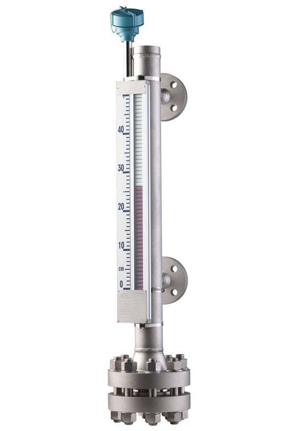⑸磁性浮子液位計,用一臺液位計可以代替多臺玻璃板式液位計,且安裝使用為方便。同時,使用本廠開發(fā)的液位遠傳變送器、報警自動控制儀,可實現(xiàn)上、下限位報警及監(jiān)控自動化。