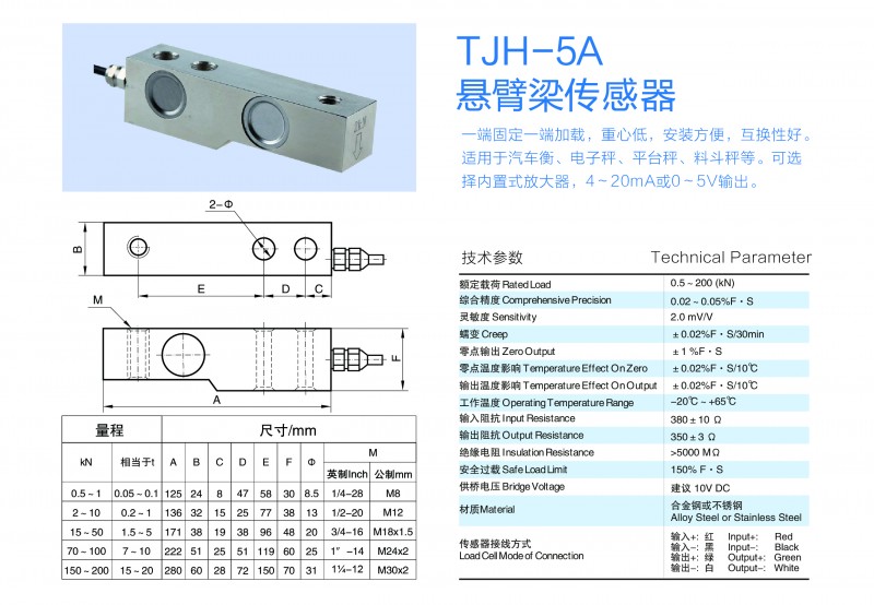 TJH-懸臂梁傳感器汽車衡電子秤技術(shù)參數(shù)