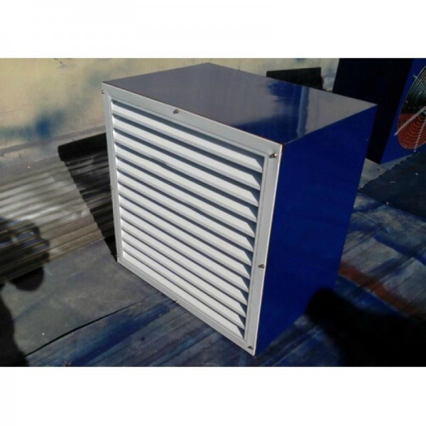 (3)有防雨和自然風倒灌的作用,在風機出風口設有自動百葉氣閥,制作時已調節(jié)好配重,當風機停止運轉時氣閥自動關閉防止室外雨水和自然風向室內倒灌,風機運轉時氣流自動吹開氣閥。