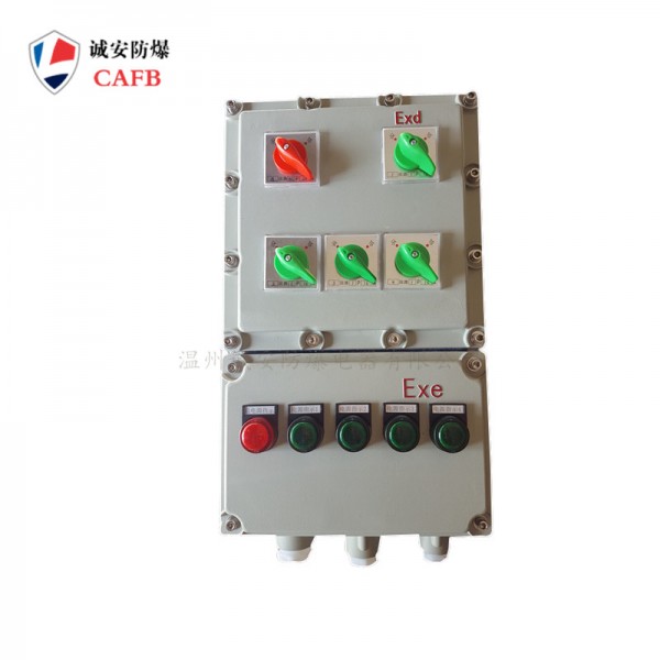 防爆照明配電箱與防爆動力配電箱在常規(guī)情況下材質(zhì)主要選用鋁合金,箱體以配電箱回路數(shù)的多少用多個不同的鋁合金小箱子拼接而成,分為增安部分和隔爆部分,增安部分內(nèi)裝不現(xiàn)電流大小的接線端子用于給用戶接總進(jìn)線和出線設(shè)備提供方便,隔爆部分內(nèi)裝電器元件,包括斷路器,熱繼電器和交流接觸器等等電器設(shè)備,主要便于防止內(nèi)部電器損壞導(dǎo)致電器自然或是爆炸對外界物體損壞的保護(hù)。
