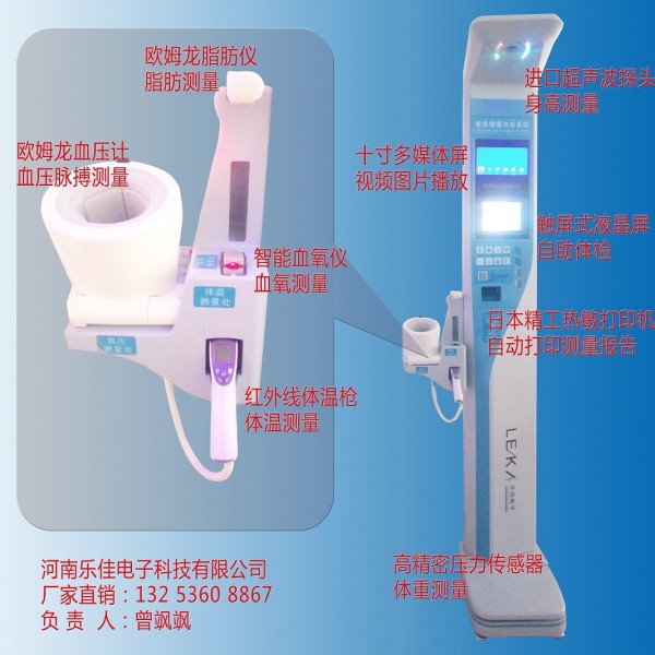 自動自助式測量身高、體重、血壓、心率、脂肪含量、基礎(chǔ)代謝、水分含量,血氧含量,膳食營養(yǎng)分析,運動指導(dǎo),健康指導(dǎo) |