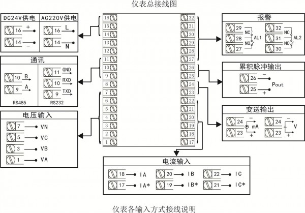 可直接采集三相交流電壓、三相交流電流信號,可測量三相有功功率、三相無功功率、三相視在功率、三相功率因數(shù)、三相工頻周波、三相諧波及各種電能。