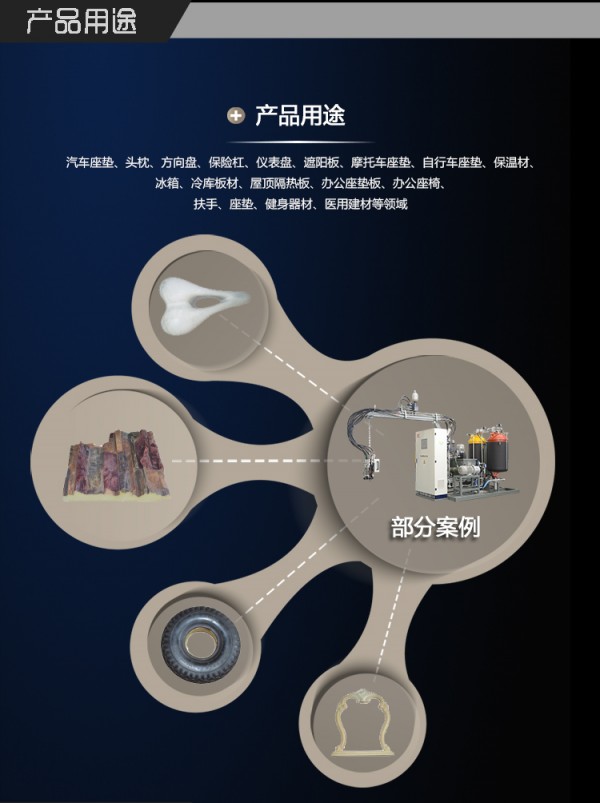 包裝行業(yè):現(xiàn)場(chǎng)發(fā)泡包裝、減震器發(fā)泡包裝、機(jī)電包裝機(jī)、電機(jī)現(xiàn)場(chǎng)發(fā)泡包裝、汽車配件發(fā)泡機(jī)、易損件包裝機(jī)、玻璃制品包裝機(jī)等等。