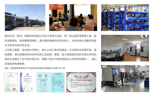 德召尼克(常州)焊接科技有限公司(www.ger-sonic.cn)于2016年6月在江蘇常州注冊成立的合資公司,主要從事以超聲波焊接,振動摩擦焊接,激光塑料焊接應(yīng)用為核心,非標自動化設(shè)備研發(fā)設(shè)計為依托,服務(wù)客戶面向全國,輻射國際的超聲波焊接,集創(chuàng)新技術(shù)和服務(wù)于一體的高科技企業(yè)。目前主要業(yè)務(wù)涉足:電聲行業(yè),汽車行業(yè)、醫(yī)療行業(yè),環(huán)保等領(lǐng)域。 公司秉承以科技為先導、以品質(zhì)和效益為中心、以技術(shù)創(chuàng)新為推動力,致力于為客戶提供先進的超聲波,振動摩擦,激光等焊接領(lǐng)域的技術(shù)開發(fā)與研究,主要涉及產(chǎn)品包括:超聲波塑料焊接、超聲波金屬焊接、振動摩擦焊接,激光塑料焊接系統(tǒng)、以及相應(yīng)焊頭、模具的設(shè)計和制造,非標自動化系統(tǒng)設(shè)備集成。 公司科研實力雄厚,由河海大學博士、碩士以及行業(yè)專家組成,已與國內(nèi)多家超聲波、振動摩擦、激光焊接技術(shù)的研究機構(gòu),以及美國、德國、瑞士等國家和地區(qū)的著名研究機構(gòu)和企業(yè)建立了合作關(guān)系,聘請了世界知名的行業(yè)專家擔任公司的研究顧問