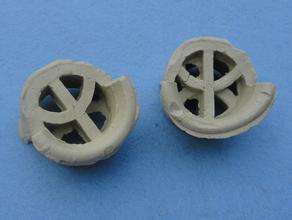 四平共軛環(huán)圖片塑料共軛環(huán)填料結(jié)合了環(huán)形和鞍形填料的優(yōu)點(diǎn),采用共軛曲線肋片結(jié)構(gòu),兩端外卷邊及合適的長徑比,填料間或填料與塔壁間均為點(diǎn)接觸,不會產(chǎn)生疊套。孔隙均勻,阻力小,亂堆時取定向排列,故有規(guī)整填料和特點(diǎn)。有較好的流體力學(xué)和傳質(zhì)性能??捎盟芰?、金屬和陶瓷做成。
