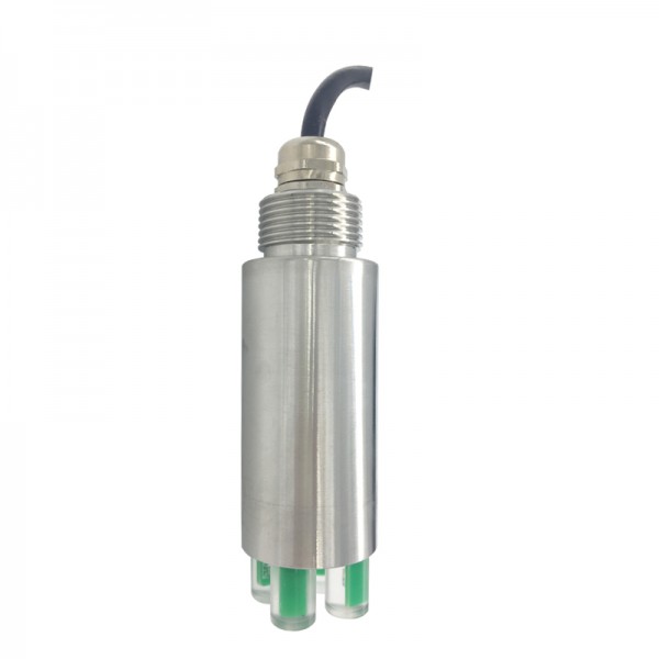 光源發(fā)出的紅外光透過被測懸浮物后照射在接收元件上。光線經(jīng)過被測物吸收、反射和散射后僅有一小部 分光線透射過去。透射光的透射率與被測污水中懸浮固體含量之間關(guān)系,可以用朗伯特—比爾定律來描述,lnS=C-K×MLSS,MLSS 表示懸浮固體含量,K、C 都是常數(shù)。所以通過測量透射光的透射率就可以計算出懸浮物濃度。常規(guī)的單光束測量法容易受到光窗粘污等因素的影響,多光束自動補(bǔ)償法通過兩個發(fā)射器和兩個接收器產(chǎn)生一系列光路,得到一組數(shù)據(jù),通過比較計算這些數(shù)據(jù)可以自動消除光窗粘污、溫度變化、器件老化等影響,實(shí)現(xiàn)穩(wěn)定、的測量。