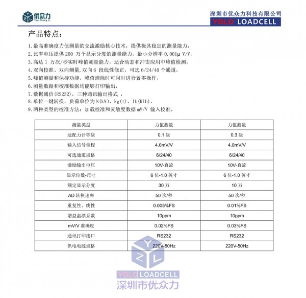 1.本測力儀表與傳感器可以組成0.1級~0.3級的標準負荷測力儀。