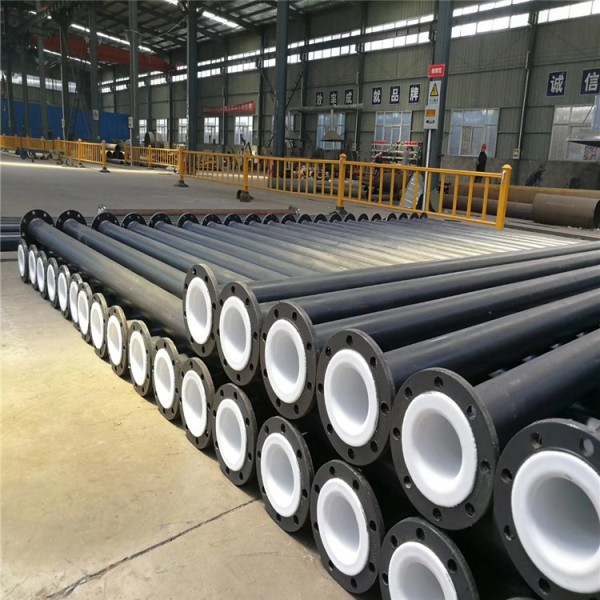 我公司做的鋼襯PP管道,是采用熱滾塑工藝,鋼管與塑粉法蘭一起制做而成,中等口徑大口徑為6米一根,兩端帶法蘭,可根據客戶需求制作其他長度的管道,管件與異形件。按照國標HG/T 20538-2016要求,內襯厚度::DN25-DN40厚度2.0mm;DN50-DN80mm厚度2.5mm~3mm;DN100-DN150mm厚度3.0mm~3.5mm;DN200-DN400mm厚度4.5~5.0mm,我們在做每種對應口徑管道的時候,測量好每根管道所需的內襯料,通過送料器送進均布在管道內壁,加熱并旋轉鋼管,達到勻襯的一種鋼襯塑管道,冷卻后除銹刷漆即為成品。