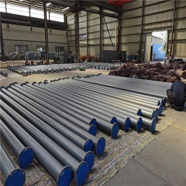 我公司的鋼襯PP管道是由鋼管,塑粉,法蘭這三部分組成;先將鋼管切成既定尺寸,然后兩端焊接法蘭,彎頭,三通等需要增加活套圈,做成活套法蘭,然后計算好每根管道所需塑粉,送入鋼管內壁,鋼管旋轉并加熱,達到一個均襯的效果。