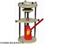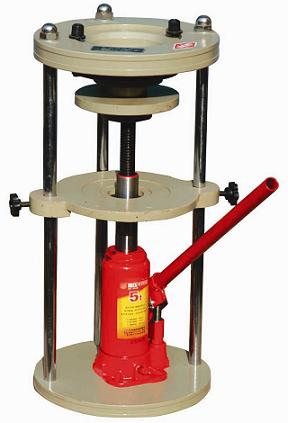 2、將試模筒連同試模蓋套在活塞頂端,試模筒中心對(duì)正脫模器頂板的圓孔中心,將千斤頂下端旋鈕旋緊,一手按住脫模起上端,防止脫模器傾倒,另一手掀動(dòng)千斤頂手柄將活塞升器,開(kāi)始拖模。
