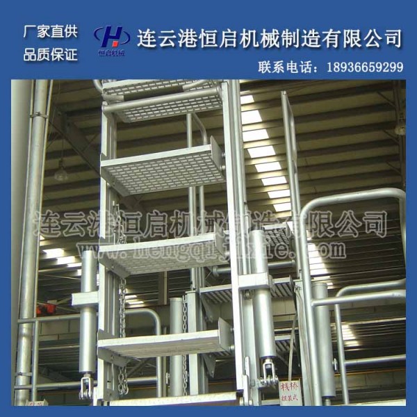 連云港恒啟機械制造有限公司生產(chǎn)的活動梯,采用先進的活動踏步框架,用彈簧缸作為平衡操作使用方便。踏步條采用齒形格柵扳結(jié)構(gòu),防滑性能好,并采取鍍鋅處理,防銹性能良好。