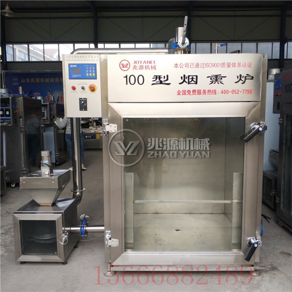 2、大家對(duì)于煙熏產(chǎn)品應(yīng)該都不陌生,尤其是煙熏火腿和豆干,另外還有煙熏雞翅、鴨脖以及魚制品,之所以美味,歸功于煙熏設(shè)備----兆源糖熏爐,食品的煙熏蒸煮等工序都在主機(jī)內(nèi)進(jìn)行,其上部設(shè)有電動(dòng)風(fēng)機(jī),多功能煙熏箱電動(dòng)機(jī)設(shè)有高速和低速旋轉(zhuǎn),使盤管加熱器的熱量和低壓蒸汽在爐內(nèi)強(qiáng)制循環(huán),控制爐內(nèi)煙量和溫度均勻。爐內(nèi)設(shè)有溫度傳感器,用于自動(dòng)檢測(cè)蒸煮、烘干和煙熏溫度不銹鋼東北臘肉豬蹄煙熏爐設(shè)備現(xiàn)貨