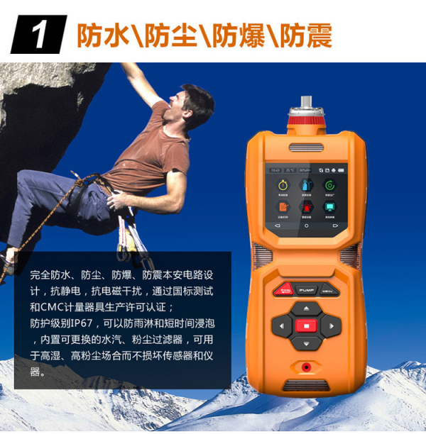 檢測氣體:一氧化碳CO、硫化氫H2S、氧氣O2、可燃氣體Ex等