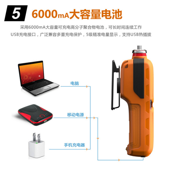 ●采用6000mA大容量可充電高分子聚合物電池,可長時間連續(xù)工作