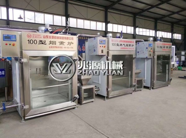 商用全自動豆干煙熏爐使制品外觀具有特有的煙熏色,對加硝肉制品促進發(fā)色作用;