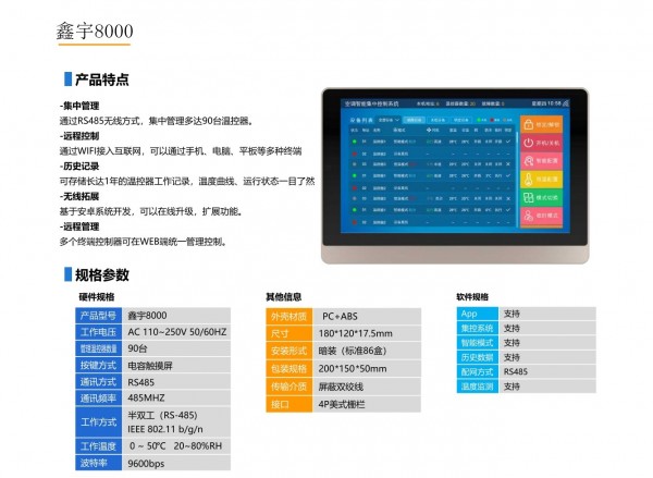 鑫宇8000中央空調(diào)集中控制系統(tǒng)基于安卓系統(tǒng)開(kāi)發(fā),適用于辦公樓、別墅、學(xué)校、工廠、醫(yī)院、酒店、住宅小區(qū)等建筑。