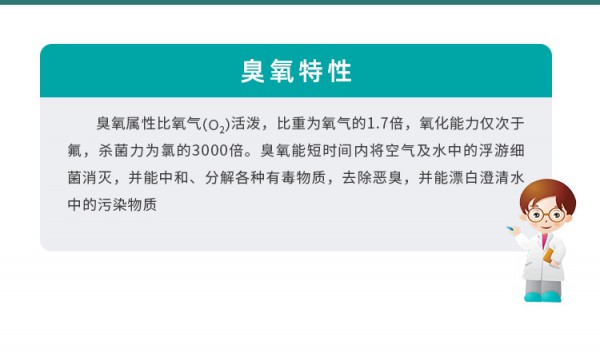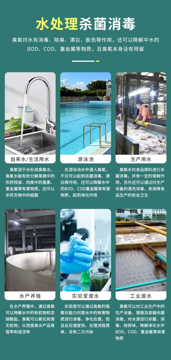 臭氧發(fā)生器對水具有消毒、降解水中BOD、COD、重金屬物質(zhì)、漂白、脫色、 除臭等氧化作用,且臭氧本身沒有殘留