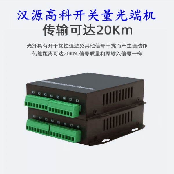 8路開關量光端機光纖延長器HY-8K(Z)根據(jù)客戶要求,在一芯光纖中傳輸8路單向開關量信號,用于可多路紅外對射報警探測器,消防火警、煙霧探測器,防盜探測器與聲光報警系統(tǒng)的長距離光纖連接。