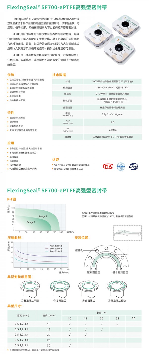 SF700 FlexingSeal 高強型膨體四氟彈性帶單面粘膠 軟四氟法蘭密封 ]信息由會員[