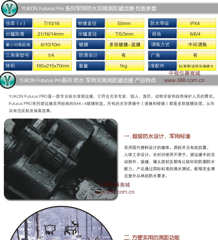 | 俄羅斯Yukon育空河 Futurus PRO 10x50WA雙筒望遠(yuǎn)鏡 超高清 |