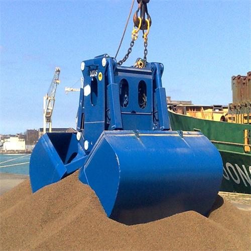 MRS GREIFER電動抓斗在帶有一個或兩個吊繩卷筒的起重機上運行。它有自己的液壓驅(qū)動裝置,由電動 機、液壓泵和液壓元件組成。起重機通過電線提供電力,電線也可以包括控制線。通過液壓驅(qū)動,電機 抓斗獲得閉合力。這個力通過一個方便的杠桿比和適當?shù)淖灾貍鬟f到材料上。