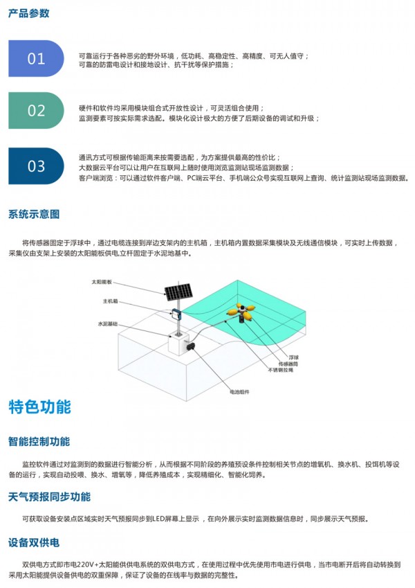 水產(chǎn)養(yǎng)殖業(yè)作為農(nóng)業(yè)產(chǎn)業(yè)之一,對(duì)于食品安全、促進(jìn)農(nóng)村經(jīng)濟(jì)發(fā)展和改善人民生活水平有意義。然而,隨著人口的增長(zhǎng)和城市化進(jìn)程的加快,水環(huán)境污染問題日益突出,給水產(chǎn)養(yǎng)殖業(yè)帶來了挑戰(zhàn)。為了確保水產(chǎn)養(yǎng)殖產(chǎn)品的質(zhì)量和安全,提高養(yǎng)殖效益,迫切需要一種可靠的水產(chǎn)養(yǎng)殖監(jiān)測(cè)產(chǎn)品來幫助養(yǎng)殖戶實(shí)時(shí)了解水質(zhì)狀況、掌握養(yǎng)殖環(huán)境信息,以便及時(shí)采取相應(yīng)的措施,降低風(fēng)險(xiǎn),提高產(chǎn)量和品質(zhì)。