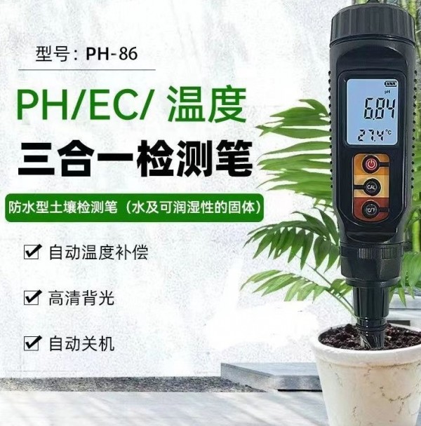 PH-86防水筆式土壤PH&EC計適用于土壤、面團,大屏幕讀數(shù)清晰,測量精準。