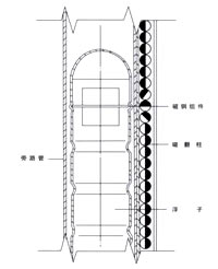 液位計(jì)根據(jù)浮力原理和磁性耦合作用研制而成。當(dāng)被測(cè)容器中的液位升降時(shí),液位計(jì)主導(dǎo)管中的浮子也隨之升降,浮子內(nèi)的磁鋼通過(guò)磁耦合傳遞到現(xiàn)場(chǎng)指示器,驅(qū)動(dòng)紅、白翻柱翻轉(zhuǎn)180。,當(dāng)液位上升時(shí),翻柱由白色轉(zhuǎn)為紅色,當(dāng)液位下降時(shí),翻柱由紅色轉(zhuǎn)為白色,指示器的紅、白界位處為容器內(nèi)介質(zhì)液位的實(shí)際高度,從而實(shí)現(xiàn)液位的指示。 |